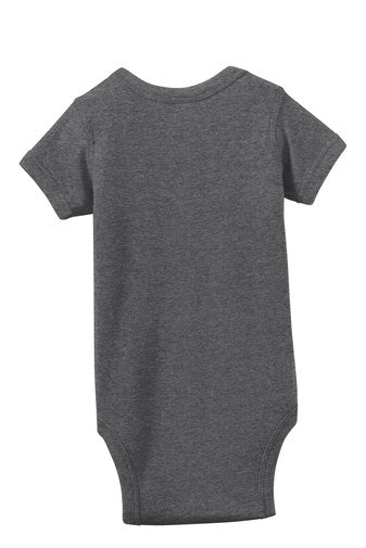 Soft and lightweight, this bodysuit has a heathered pattern in a variety of colors for a cool, casual look and retro feel. Lap shoulders make for easier changing.